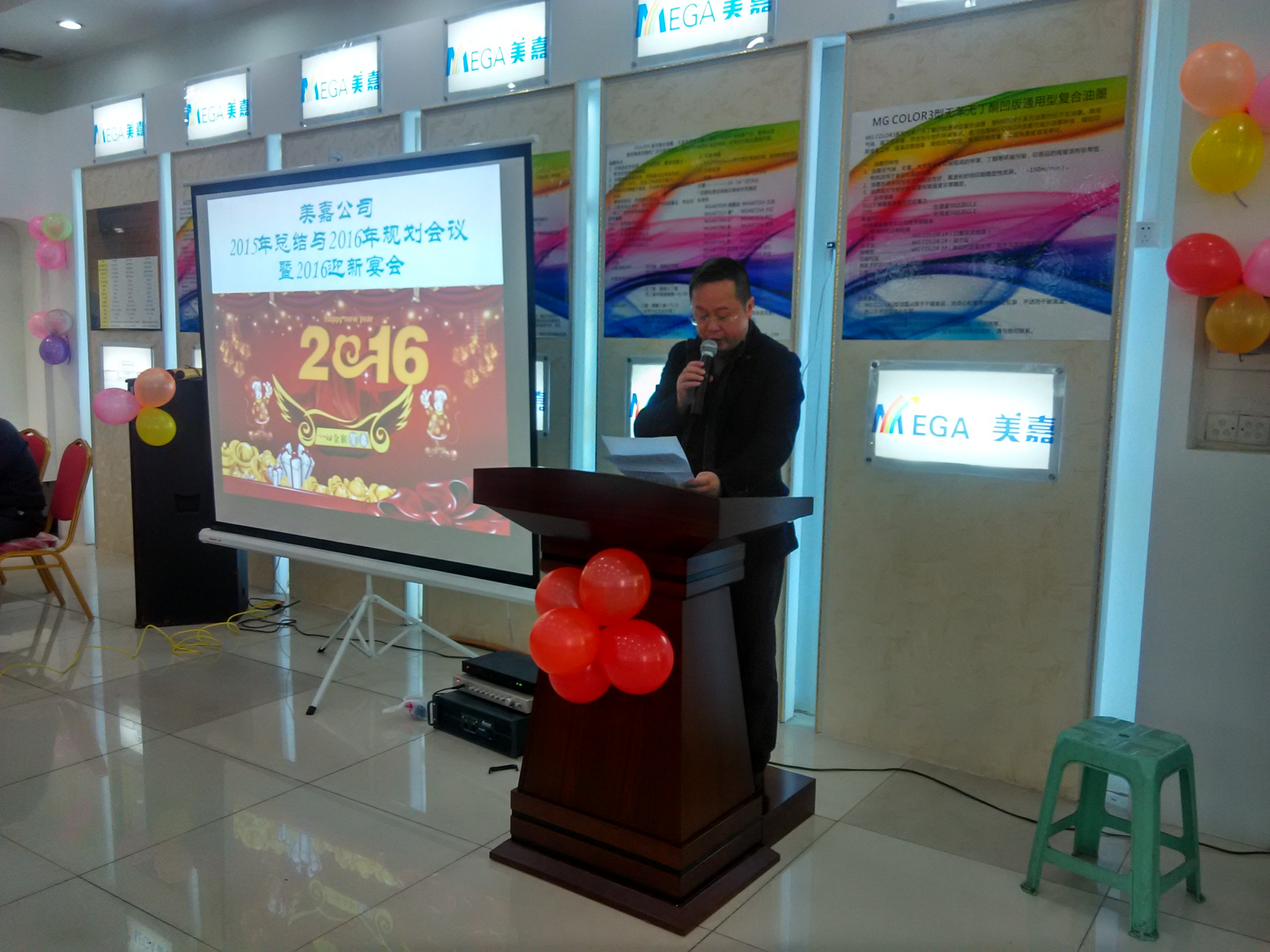 2016年1月30日,美嘉全體員工歡聚一堂,參與公司2015年總結與2016年規(guī)劃會議暨2016迎新宴會。